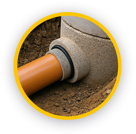 Beton aknafenék elemekhez tervezett, ISO minősített PVC-U idomaink tökéletesen illeszkednek a csapadék- és szennyvízcsatorna rendszerekbe.